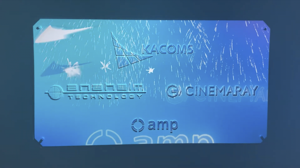 エントランスに設置された企業ロゴに合わせたプロジェクションマッピングコンテンツです。人感センサー連動により、来客があるタイミングで映像がスタートするインタラクティブな仕掛けを実装。ブランド体験・空間演出に最適な事例です。