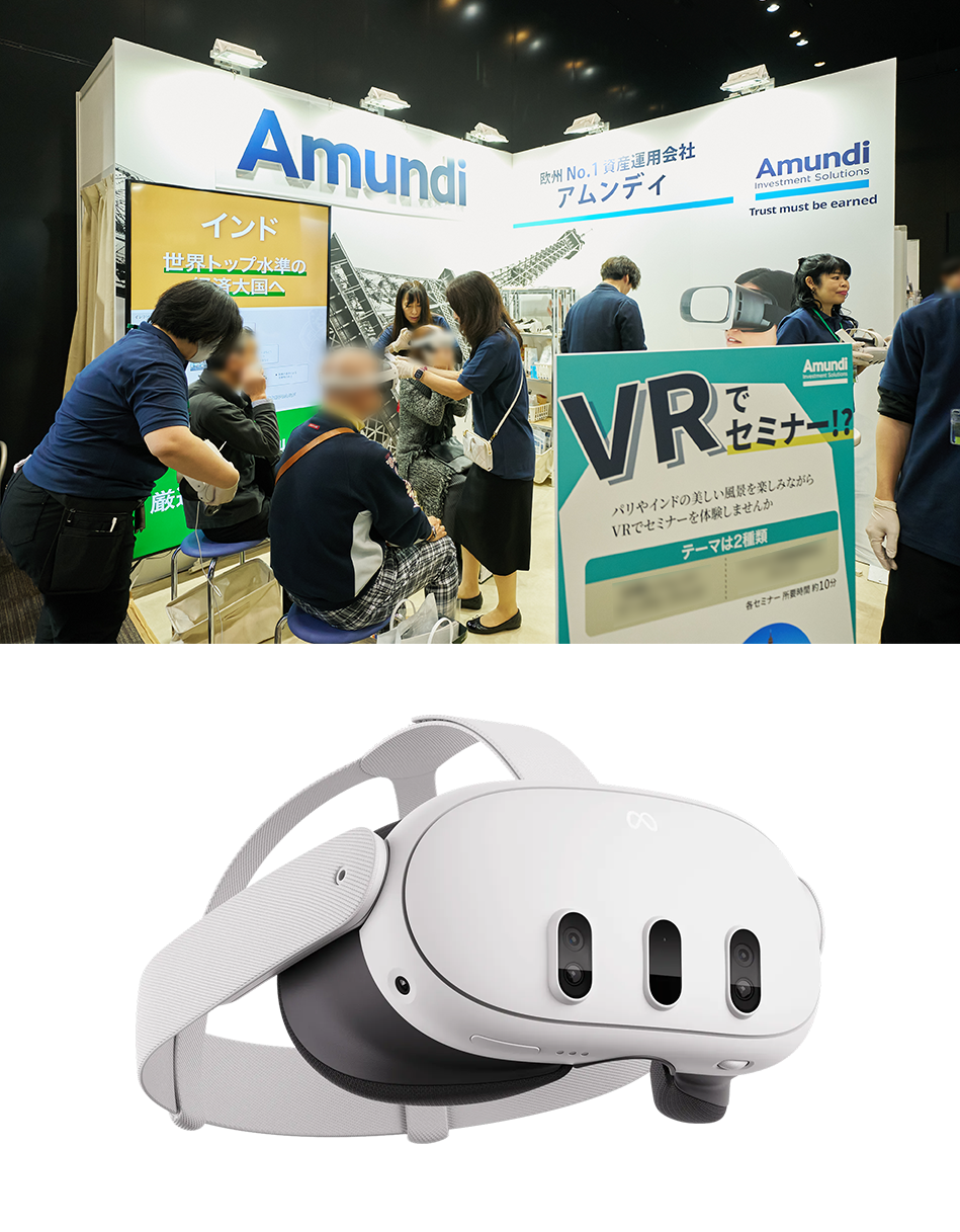 2025年11月1日(土)にベルサール東京日本橋にて開催されたイベントにおいて、アムンディ・ジャパン様のブースでご使用いただくVR映像制作を担当しました。