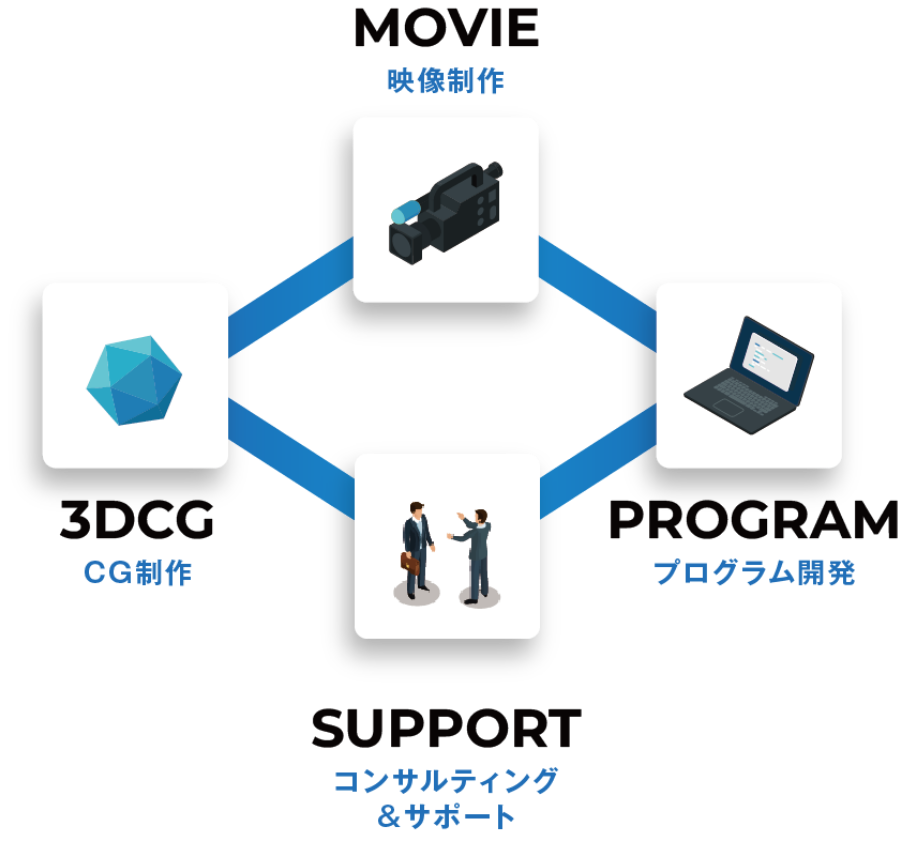 映像・CG・開発を横断し、目的に最適な体験と技術を設計します。